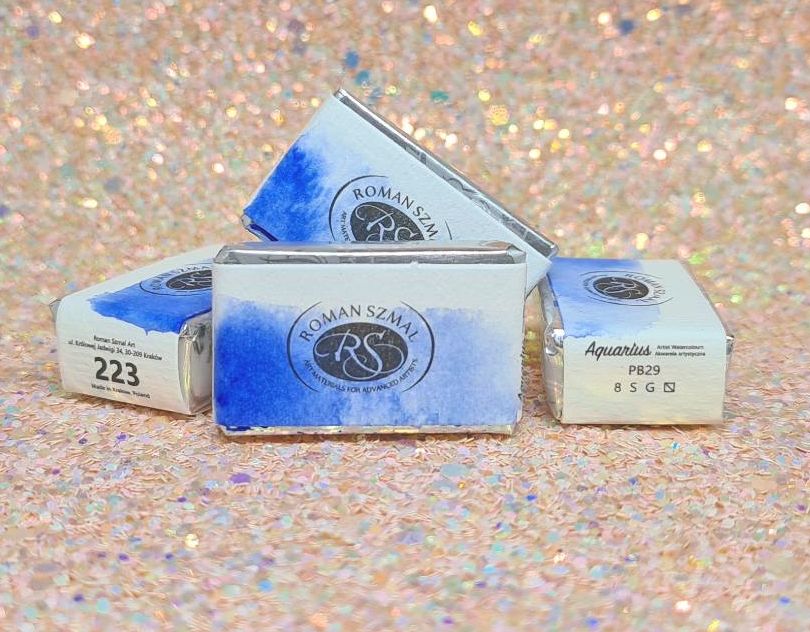 Aquarius Watercolors – najwyższej jakości wilgotne farby akwarelowe, produkowane w Polsce przez markę Roman Szmal. Gama kolorów obejmuje aż 140 pozycji! Większość barw opiera się na jednym pigmencie – dzięki temu uzyskamy oczekiwane kolory podczas ich mieszania. Spoiwem farb jest guma arabska i miód pszczeli. Duże kostki (full pan) charakteryzują się wysoką wydajnością oraz intensywnością kolorów. Wszystkie kolory posiadają najwyższa klasę światłoodporności według skali Blue Wool.
