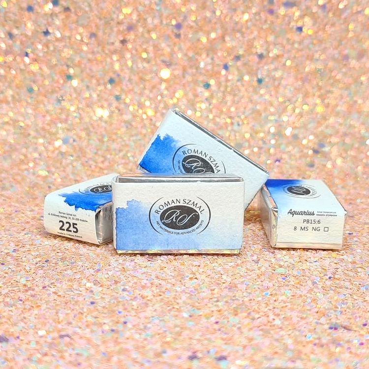 Aquarius Watercolors – najwyższej jakości wilgotne farby akwarelowe, produkowane w Polsce przez markę Roman Szmal. Gama kolorów obejmuje aż 140 pozycji! Większość barw opiera się na jednym pigmencie – dzięki temu uzyskamy oczekiwane kolory podczas ich mieszania. Spoiwem farb jest guma arabska i miód pszczeli. Duże kostki (full pan) charakteryzują się wysoką wydajnością oraz intensywnością kolorów. Wszystkie kolory posiadają najwyższa klasę światłoodporności według skali Blue Wool.