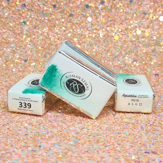 Aquarius Watercolors – najwyższej jakości wilgotne farby akwarelowe, produkowane w Polsce przez markę Roman Szmal. Gama kolorów obejmuje aż 140 pozycji! Większość barw opiera się na jednym pigmencie – dzięki temu uzyskamy oczekiwane kolory podczas ich mieszania. Spoiwem farb jest guma arabska i miód pszczeli. Duże kostki (full pan) charakteryzują się wysoką wydajnością oraz intensywnością kolorów. Wszystkie kolory posiadają najwyższa klasę światłoodporności według skali Blue Wool.