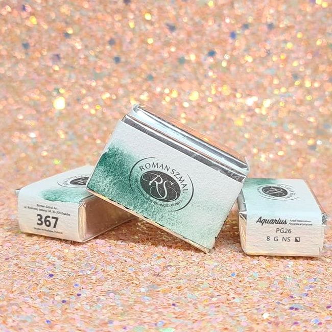 Aquarius Watercolors – najwyższej jakości wilgotne farby akwarelowe, produkowane w Polsce przez markę Roman Szmal. Gama kolorów obejmuje aż 140 pozycji! Większość barw opiera się na jednym pigmencie – dzięki temu uzyskamy oczekiwane kolory podczas ich mieszania. Spoiwem farb jest guma arabska i miód pszczeli. Duże kostki (full pan) charakteryzują się wysoką wydajnością oraz intensywnością kolorów. Wszystkie kolory posiadają najwyższa klasę światłoodporności według skali Blue Wool.