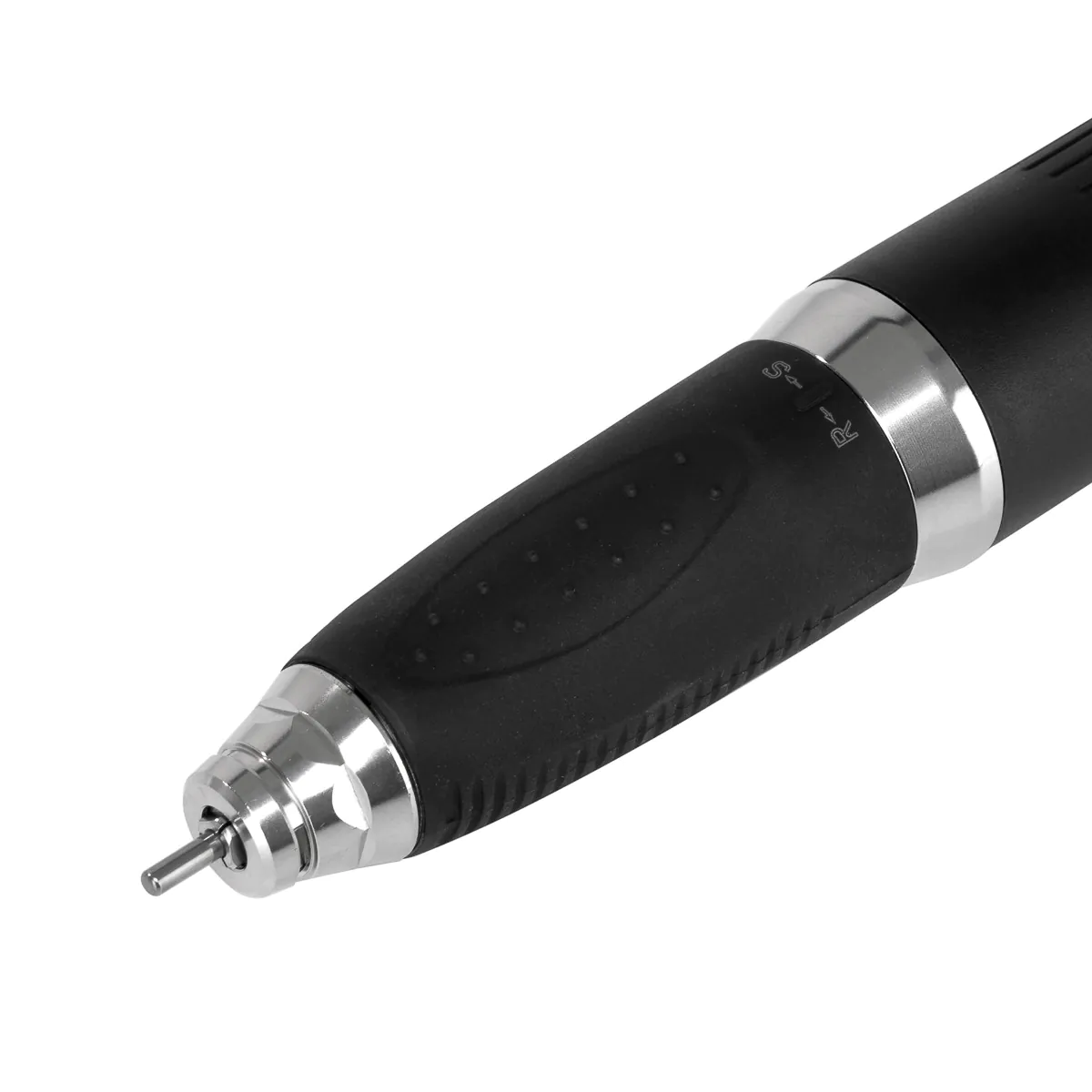 Przy użyciu pokrętła można regulować prędkość pracy głowicy do 50 000 obrotów na minutę, a aktualną prędkość wyświetla cyfrowy ekran. Pozwala na sprawne dostosowanie do indywidualnych potrzeb, a co za tym idzie komfortowe wykonywanie szerokiej gamy zabiegów. Prędkość wyświetla się na wyświetlaczu cyfrowym. Przyciski umożliwiają szybkie przełączanie na napęd nożny, zmianę kierunku obrotów oraz zatrzymanie pracy urządzenia (funkcja pauzy), co zapewnia pełną kontrolę nad frezarką i ułatwia dostosowanie jej działania do wykonywanych usług. Kontrolki LED informują o stanie urządzenia, wskazując kierunek obrotów, aktywację napędu nożnego, włączenie funkcji tempomatu oraz pauzy. Obsługa sprzętu jest prosta, efektywna i intuicyjna, co z pewnością docenią również bardziej wymagający użytkownicy.