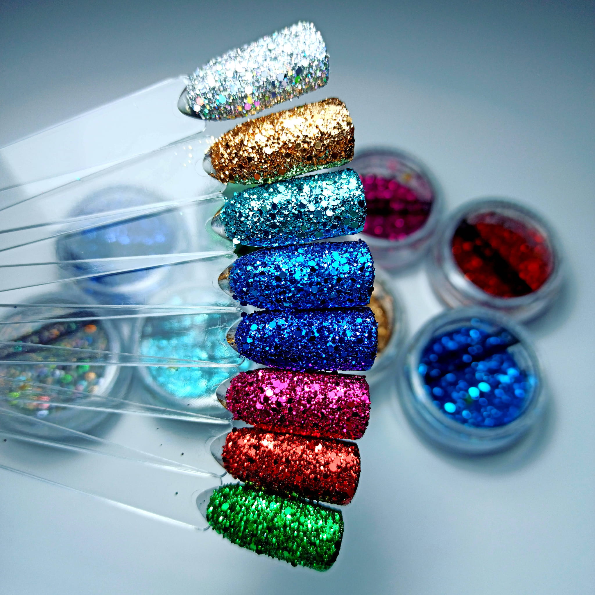 Niesamowicie połyskujący pyłek z 3 rozmiarami drobinek, którym wyczarujesz najpiękniejsze stylizacje.