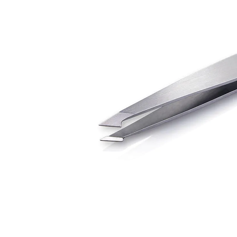 Pęseta o skośnym kształcie zakończenia, jest niezastąpiona przy zabiegach usuwania włosków lub innych zabiegach.