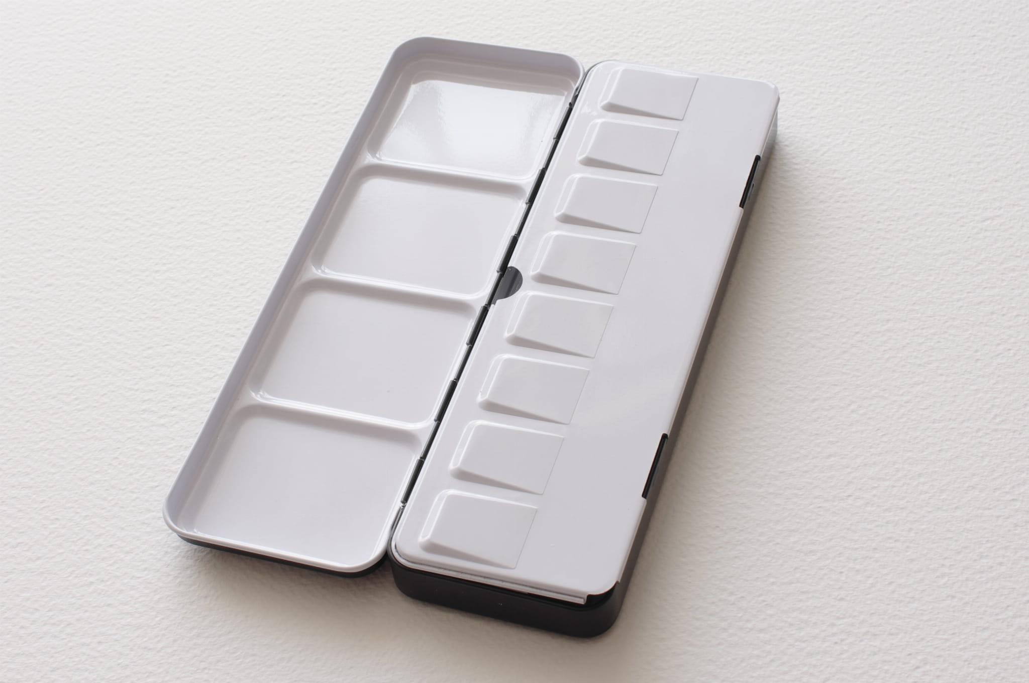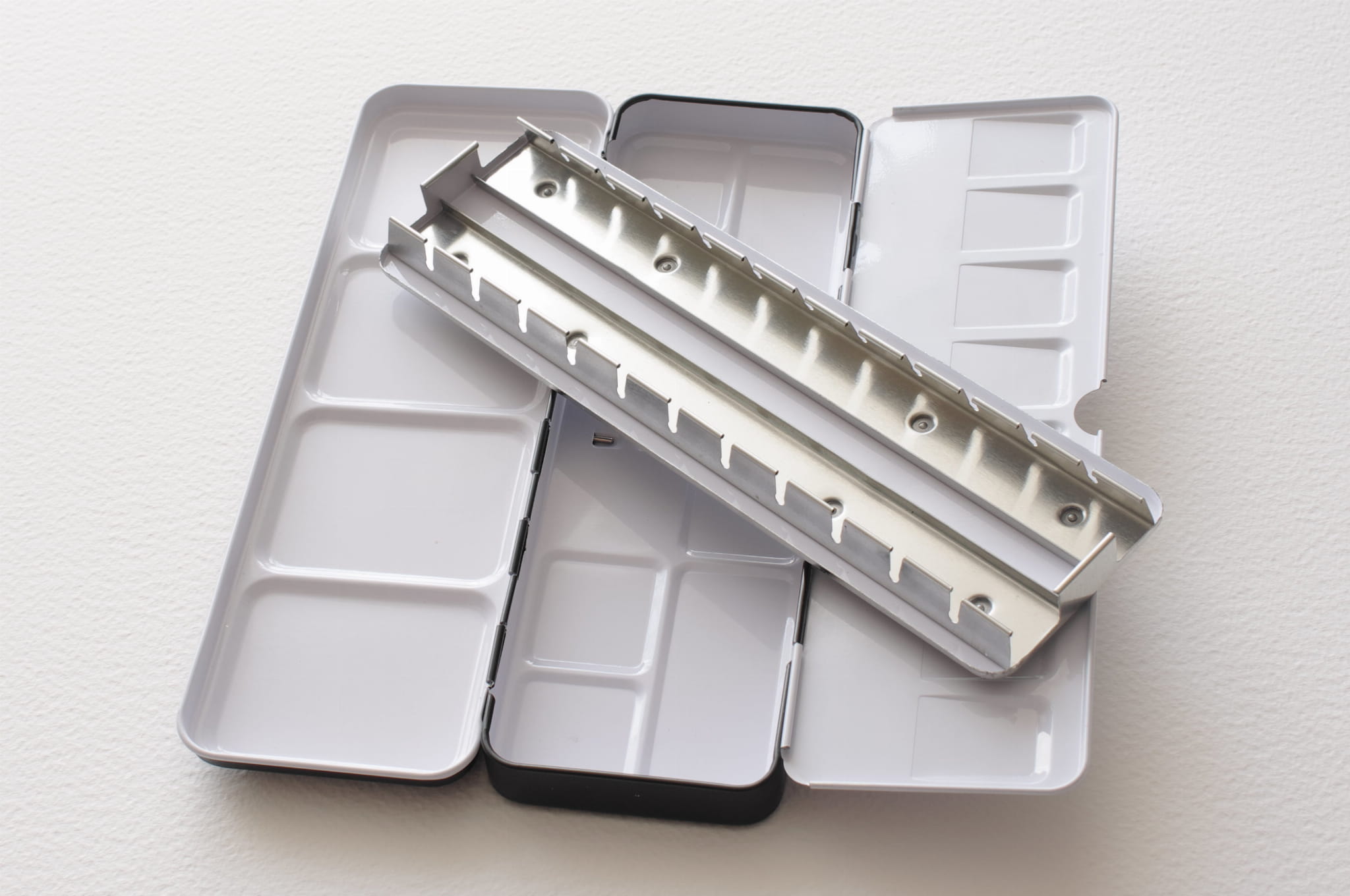 Metalowa kasetka na akwarele marki Roman Szmal. Kasetki metalowe dają artyście możliwość skomponowania własnej, unikatowej palety kolorystycznej. Posiadają wyjmowaną część wewnętrzną, w której można umieścić większość typowych kostek akwarelowych. Do etui pasują zarówno półkostki, jak i większe, pełne kostki. Pozwala to na umieszczanie w jednym miejscu kostek różnej wielkości, zależnie od preferencji oraz tego, jak często używamy danego koloru. Kostki można również dowolnie wymieniać i układać kolorystycznie. Wieczko po otwarciu posłuży jednocześnie za niezastąpioną paletę malarską. Znajdują się w nim specjalnie wytłoczone zagłębienia, które umożliwiają mieszanie kolorów bez spływania farby akwarelowej. Większa kaseta na 12 kostek lub 24 półkostki to propozycja dla tych, którzy potrzebują szerszej palety kolorów. Kasetka została wykonana z wysokiej jakości materiałów dzięki czemu posłuży wiele lat.