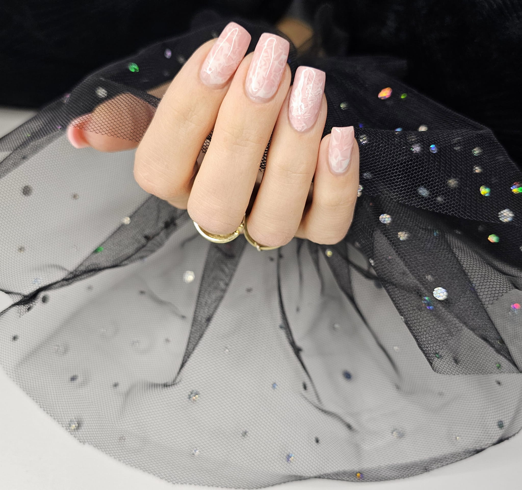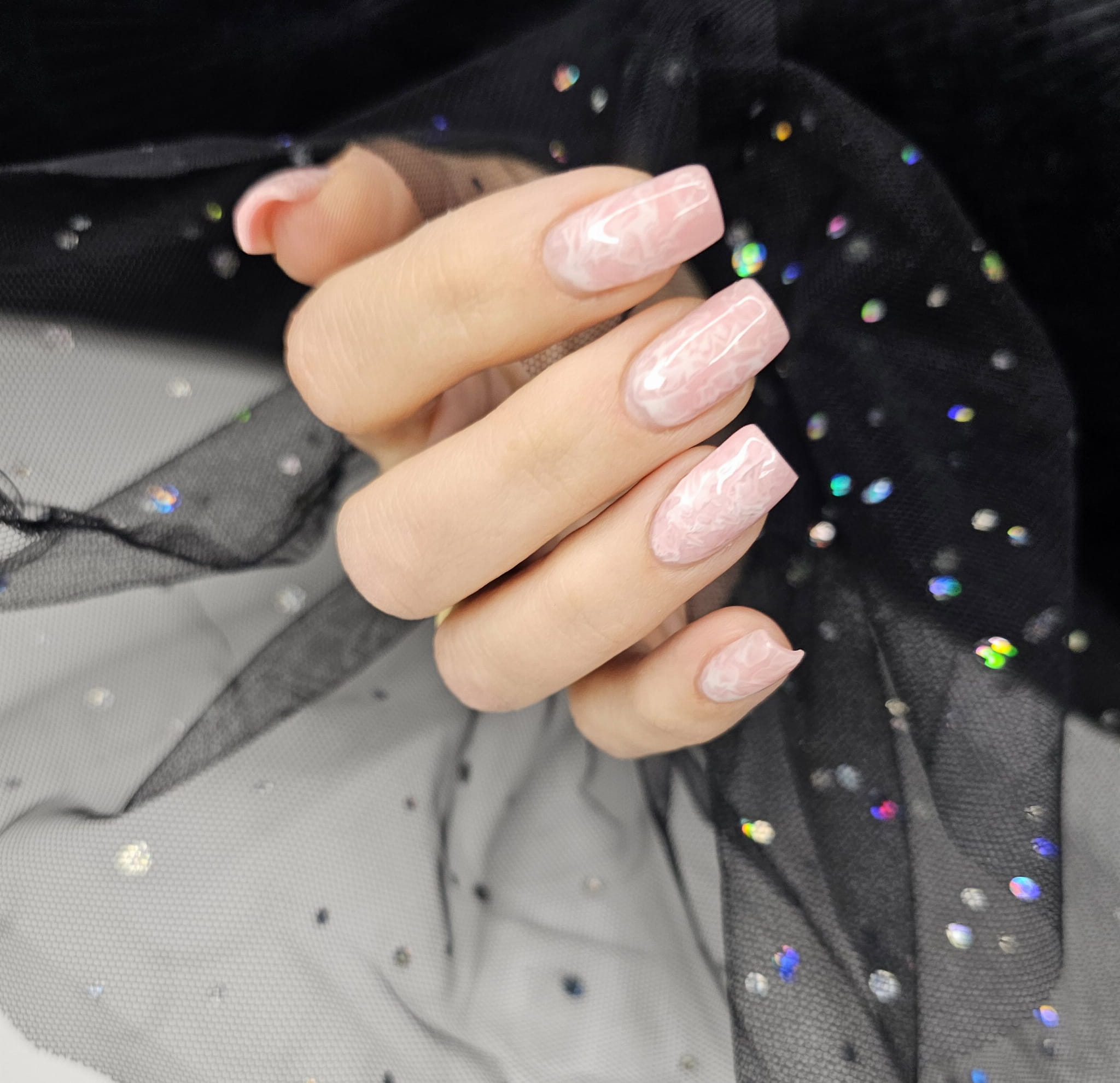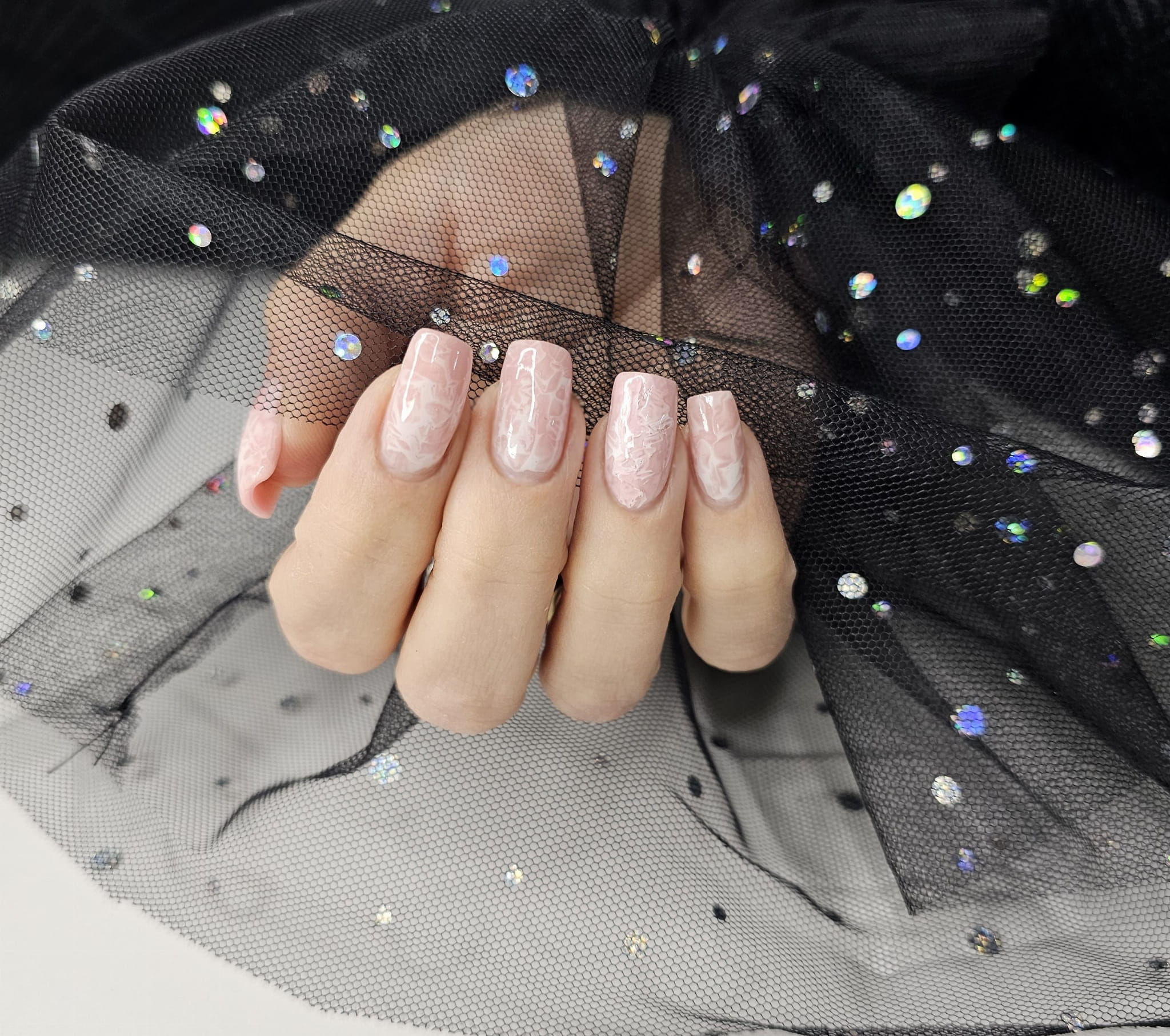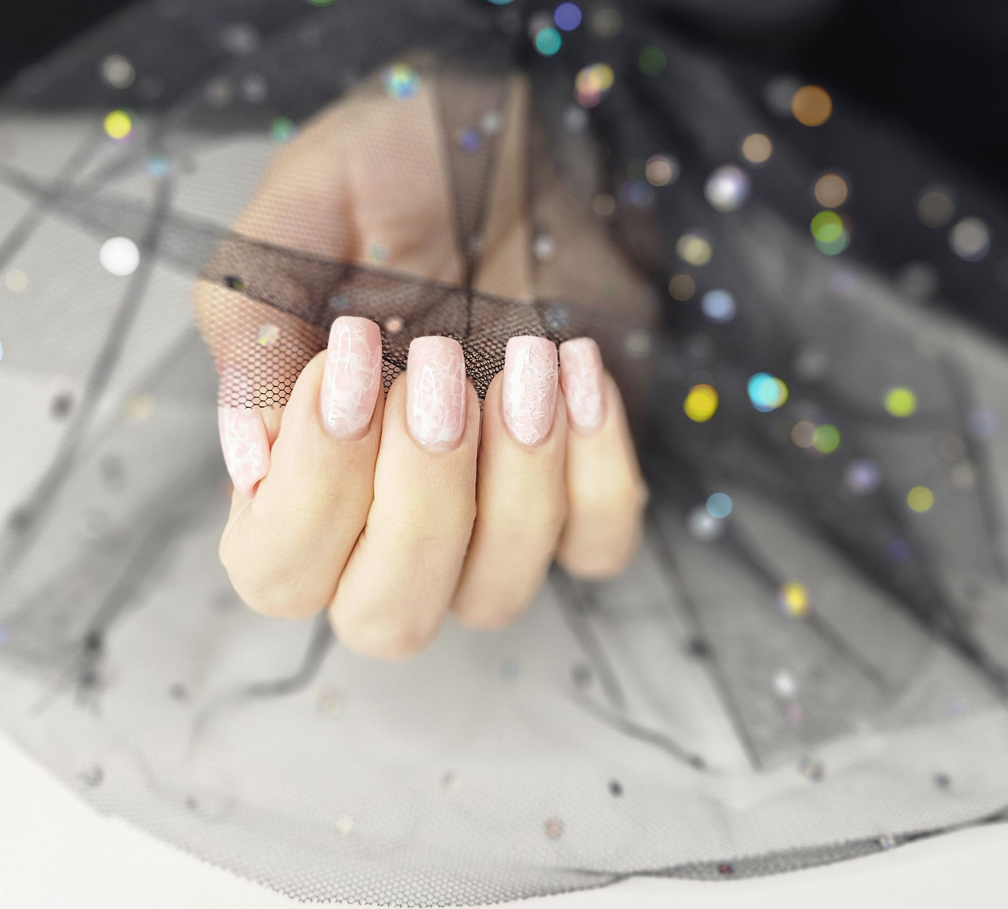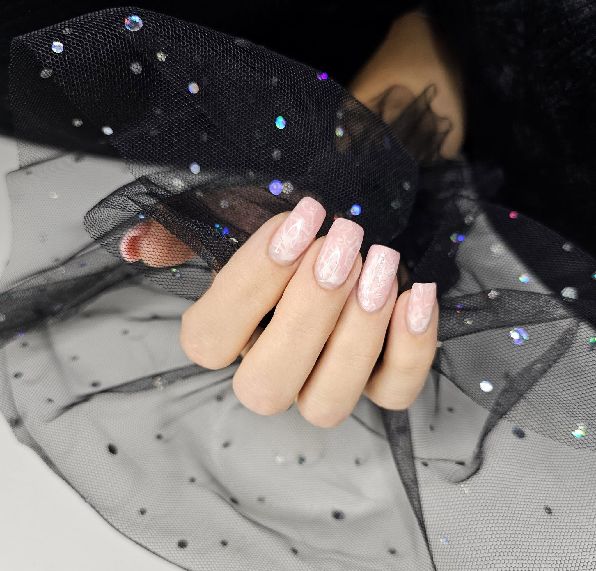 Rękaw do zdjęć paznokci tiul czarny kropki holo