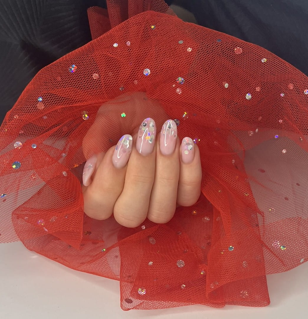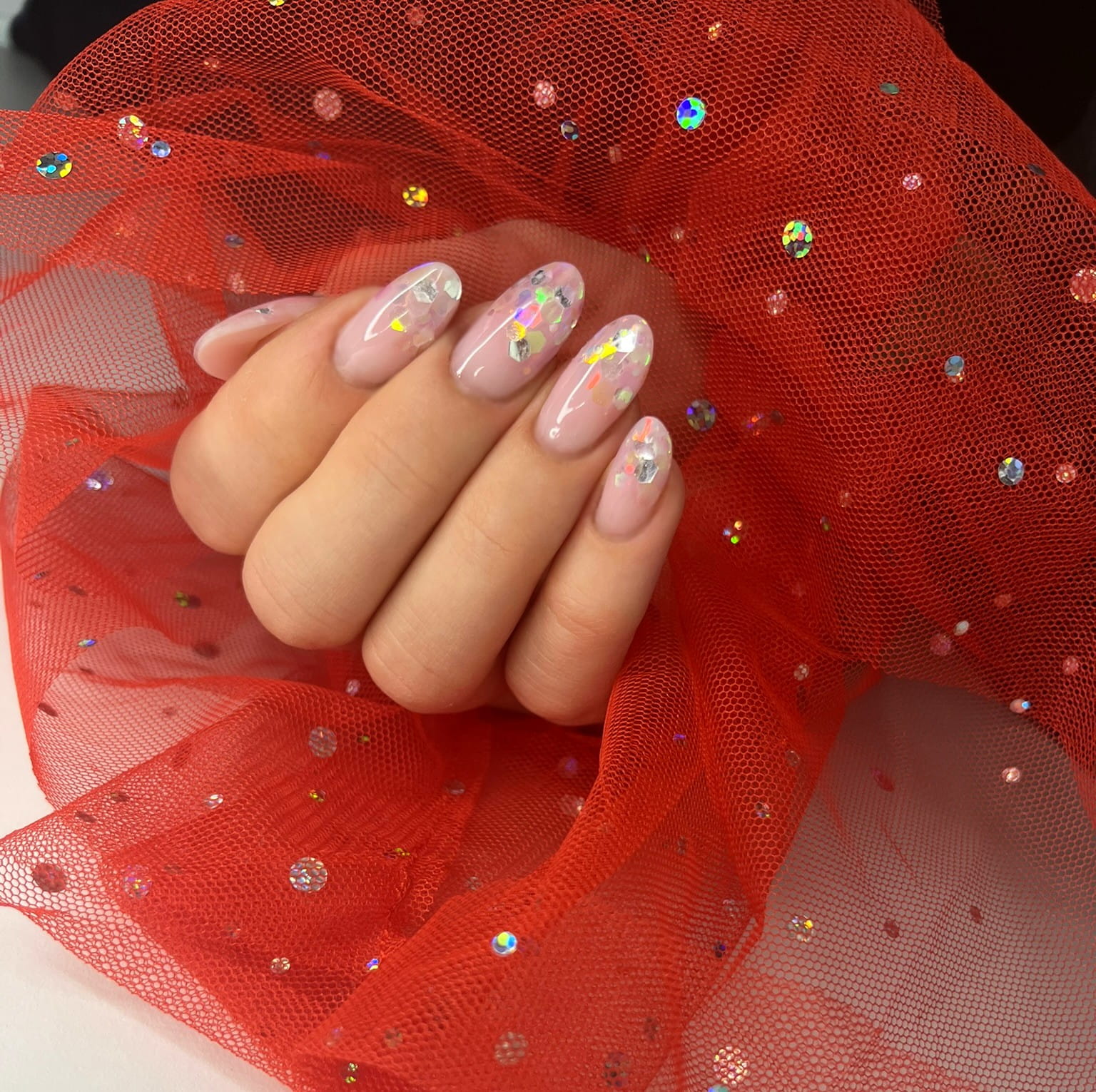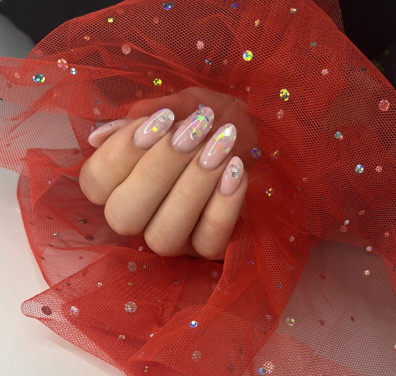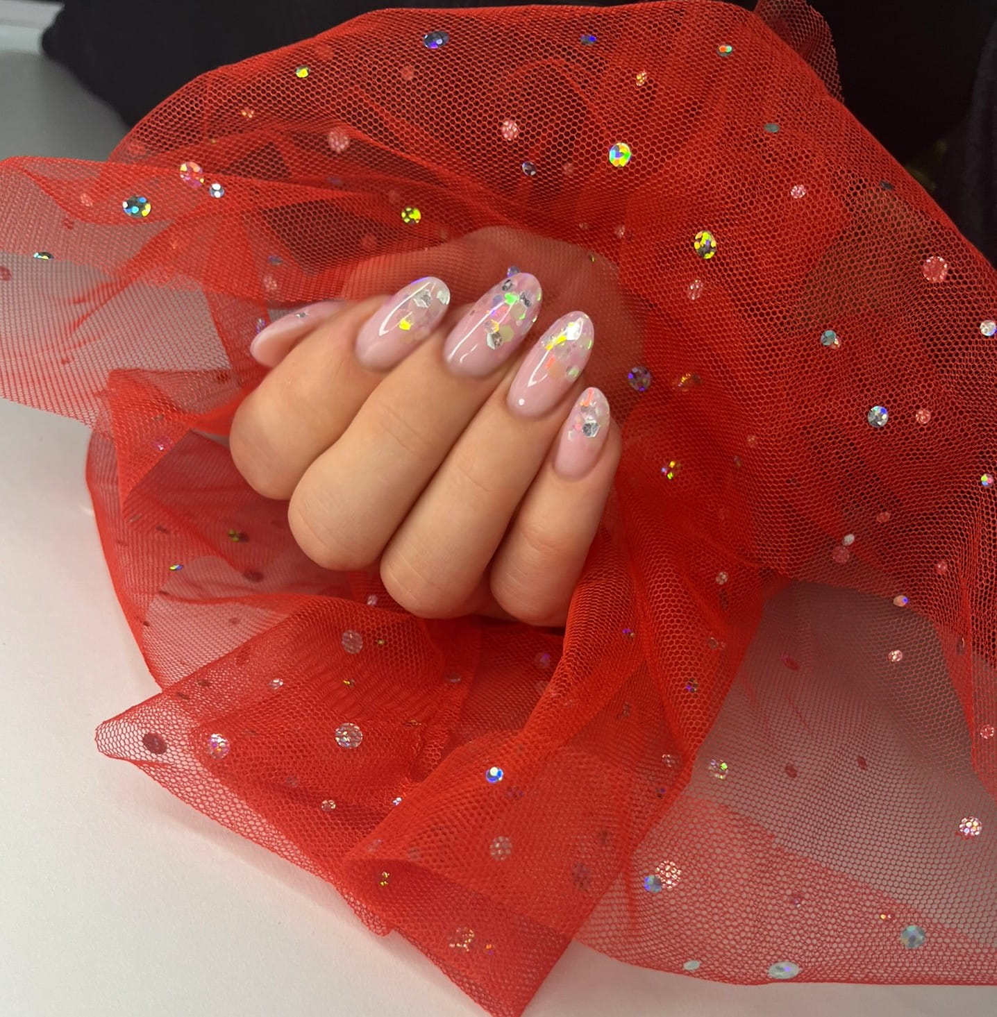 Rękaw do zdjęć paznokci tiul czerwony kropki holo