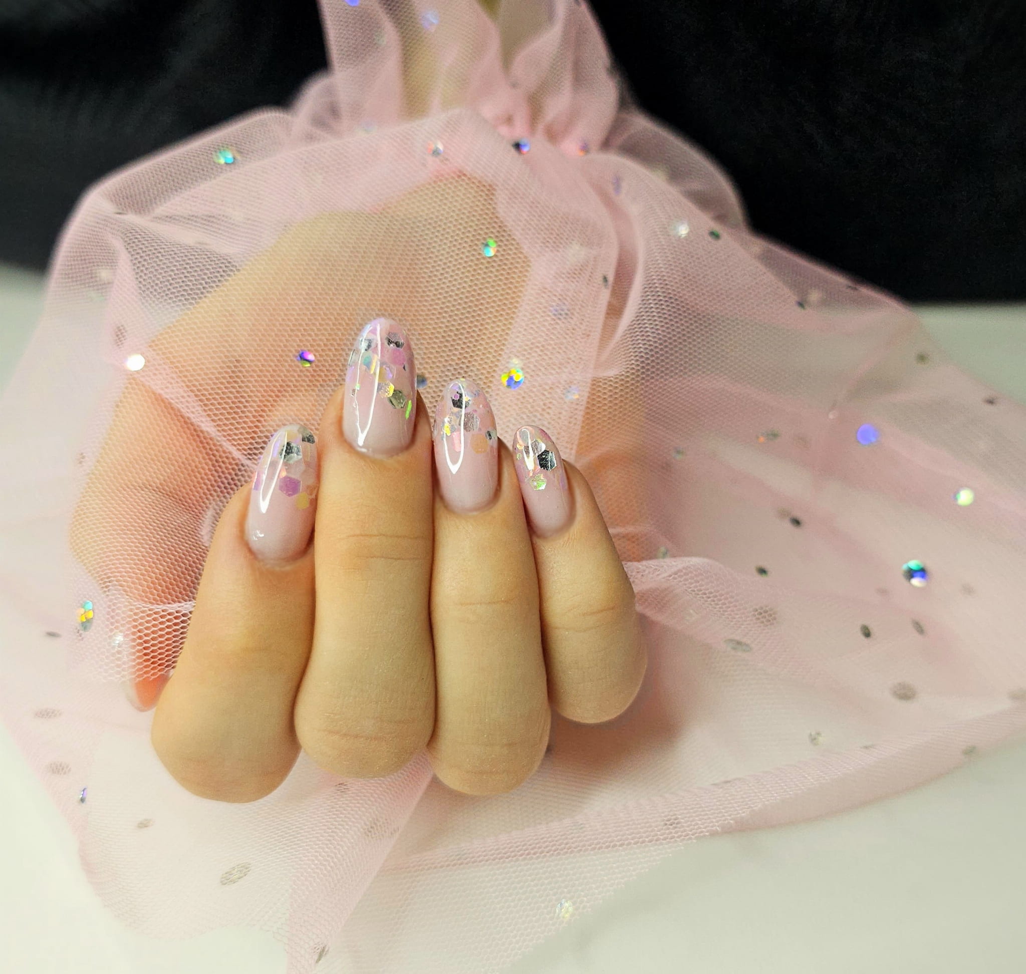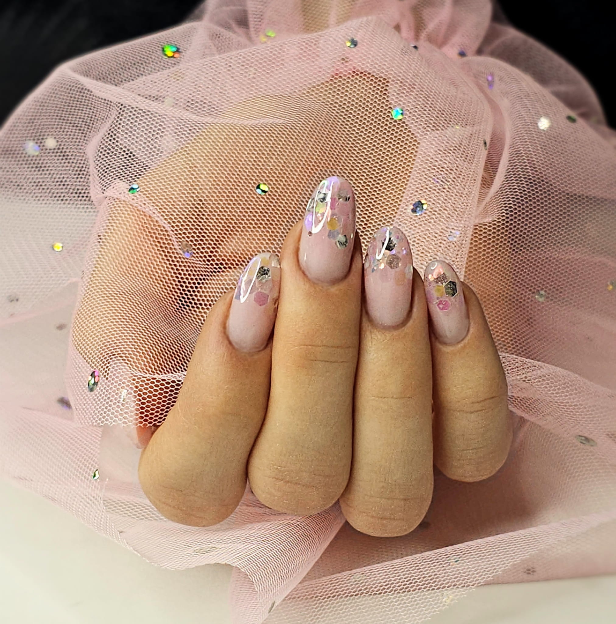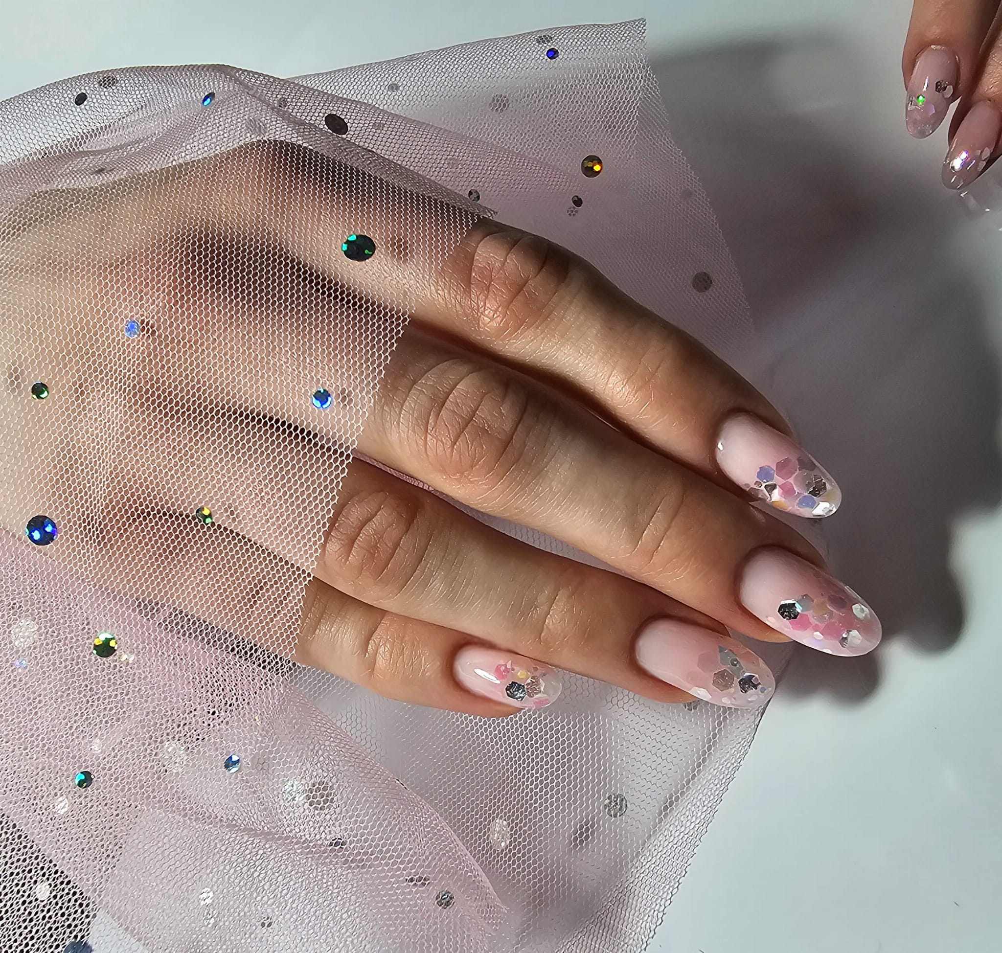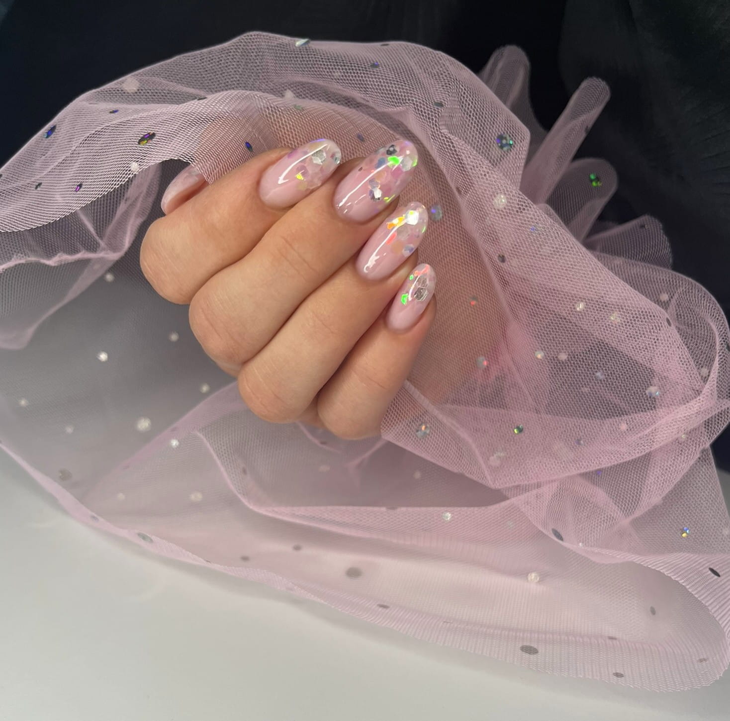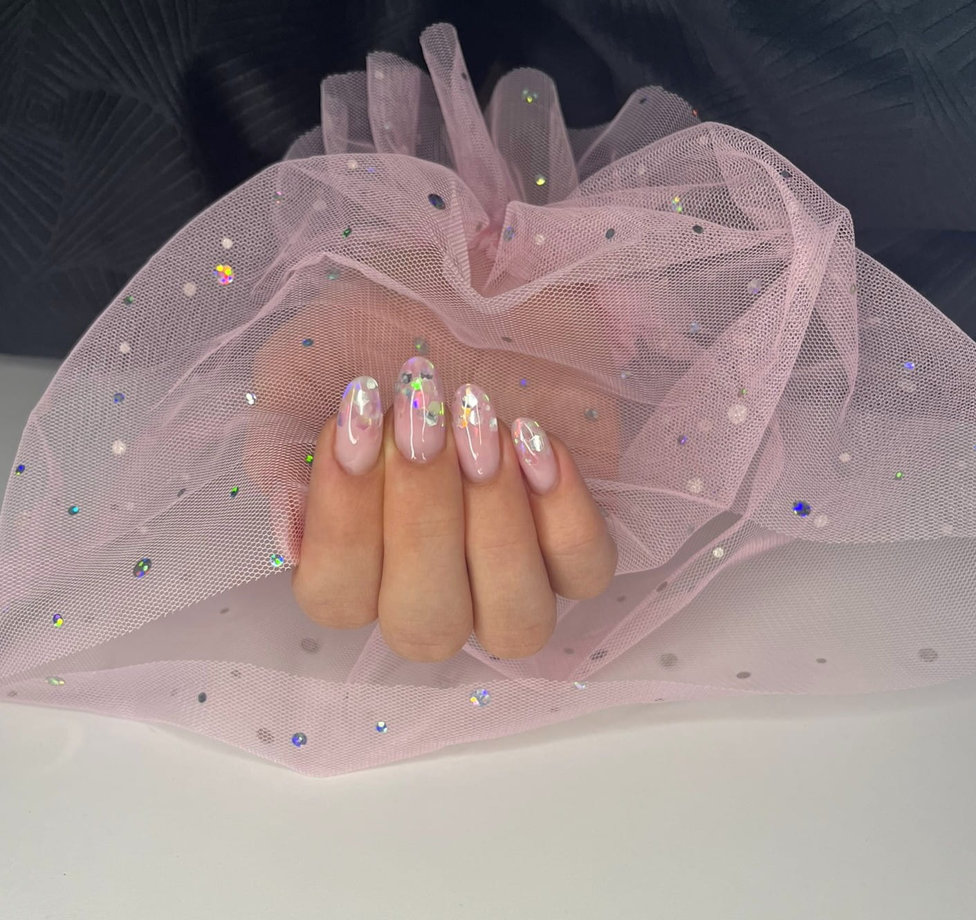 Rękaw do zdjęć paznokci tiul pudrowy róż kropki holo