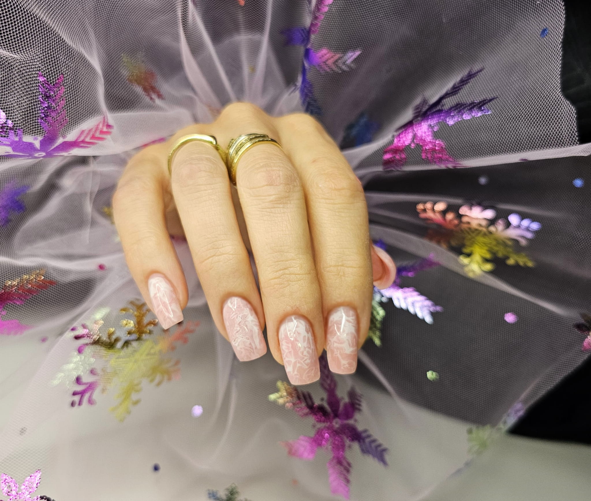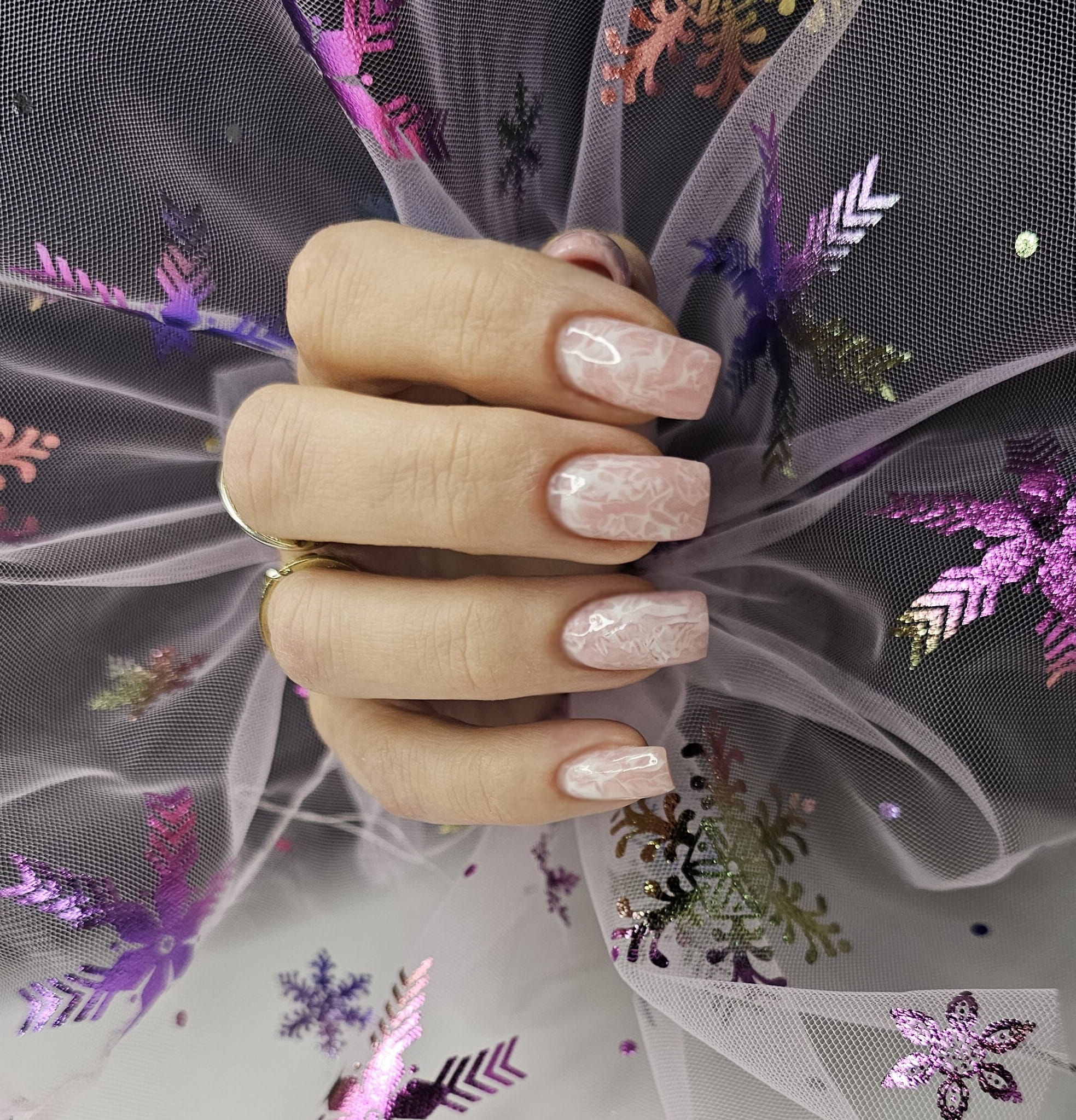 Rękaw do zdjęć paznokci tiul różowy śnieżynki holo