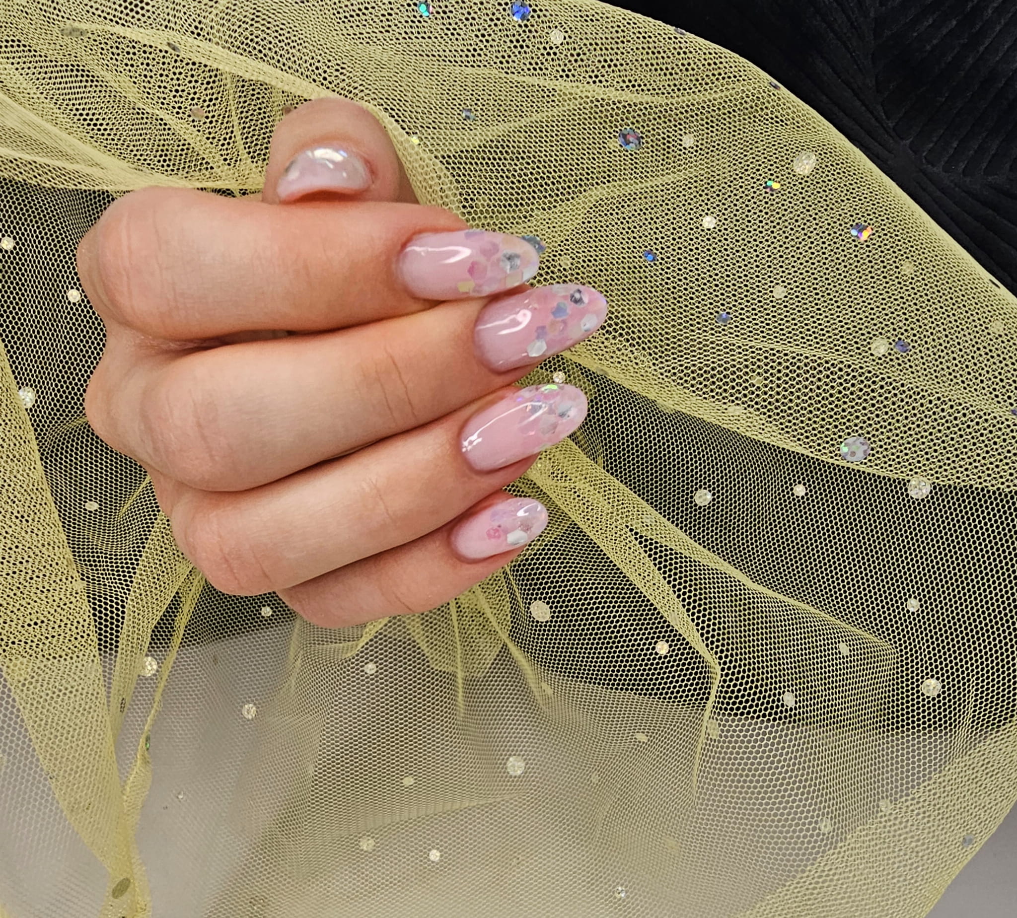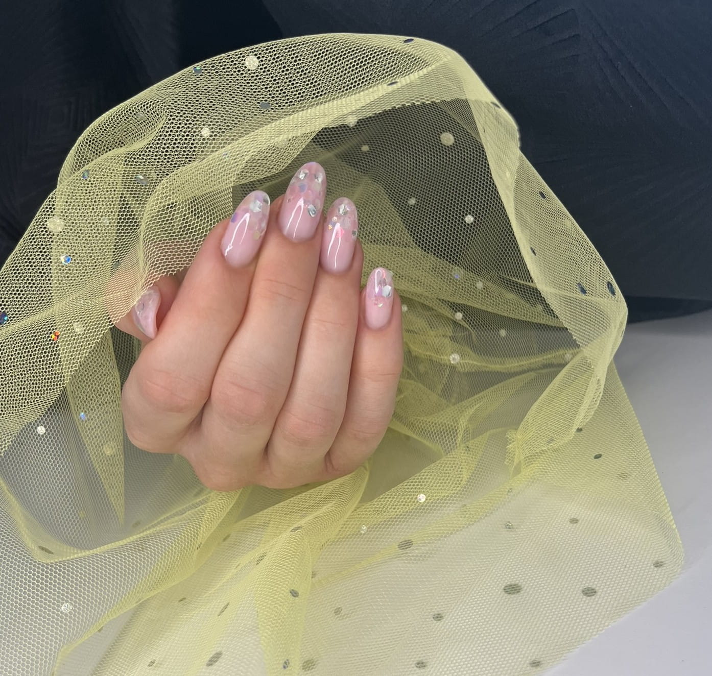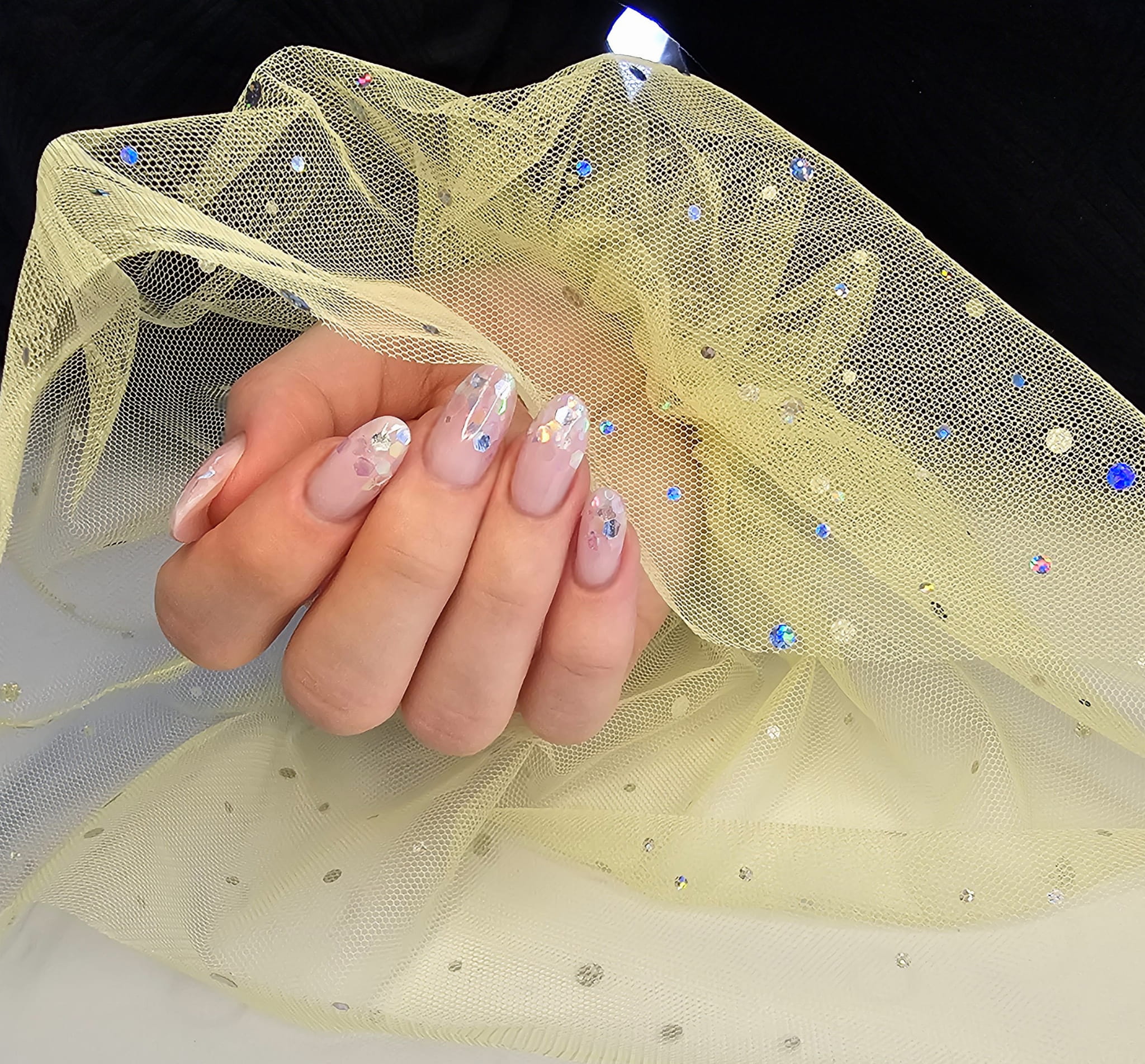 Rękaw do zdjęć paznokci tiul żółty kropki holo