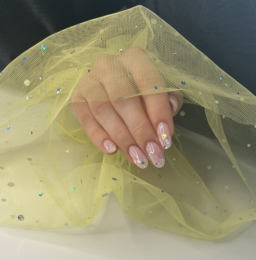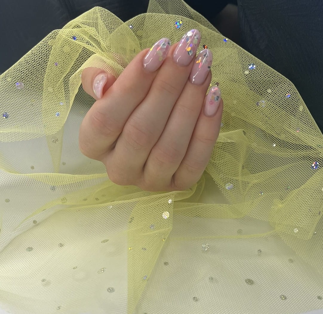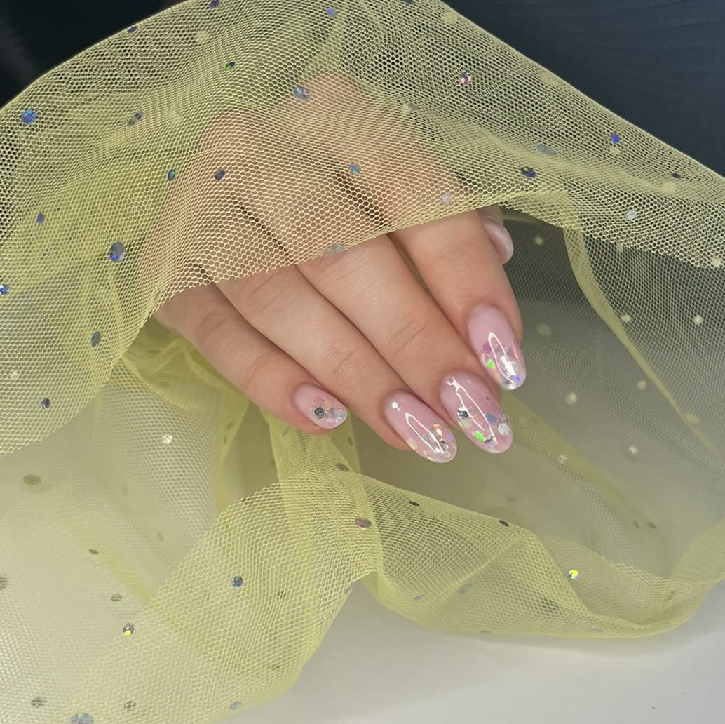 Rękaw do zdjęć paznokci tiul żółty kropki holo
