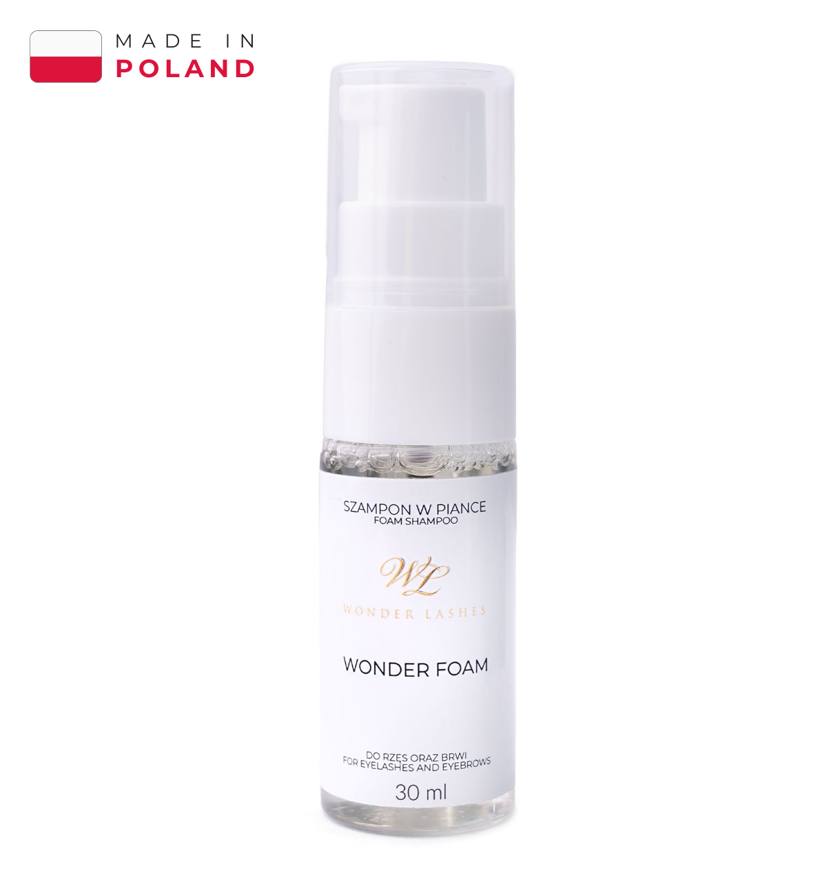 Szampon do rzęs oraz brwi w wygodnym opakowaniu z pompką to doskonały produkt zarówno do przygotowania brwi i rzęs do zabiegów stylizacji jak i pielęgnacji domowej. Skutecznie usuwa z powierzchni skóry oraz włosków zanieczyszczenia. Oczyszcza oraz utrzymuje odpowiednie pH. Szampon w piance działa antyseptycznie. Ułatwia rozpuszczanie substancji tłuszczowych, resztek łoju lub makijażu. Szampon w piance od Wonder Lashes to gwarancja utrzymania wysokiego poziomu higieny podczas zabiegów przedłużania rzęs, liftingu i laminacji oraz koloryzacji brwi. Wygodna formuła o przyjemnym zapachu i niewielka, kompaktowa buteleczka.